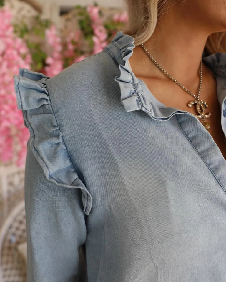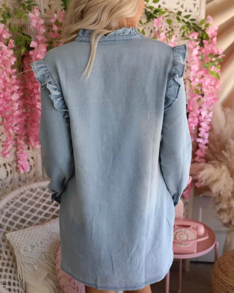 Be the first to review “Mazik Apparel Dolly Denim Ruffle Button Up Dress” Cancel reply