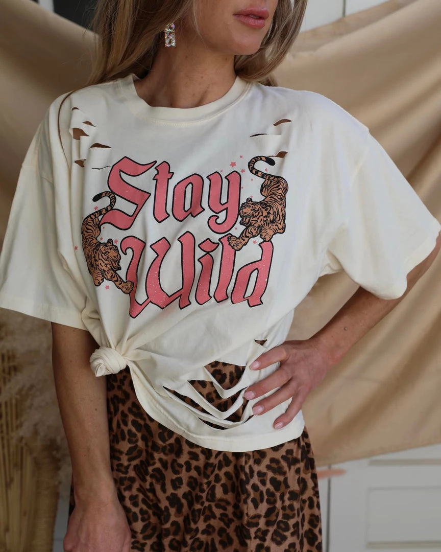 Off-White “Stay Wild” Tiger Distressed Crop Top