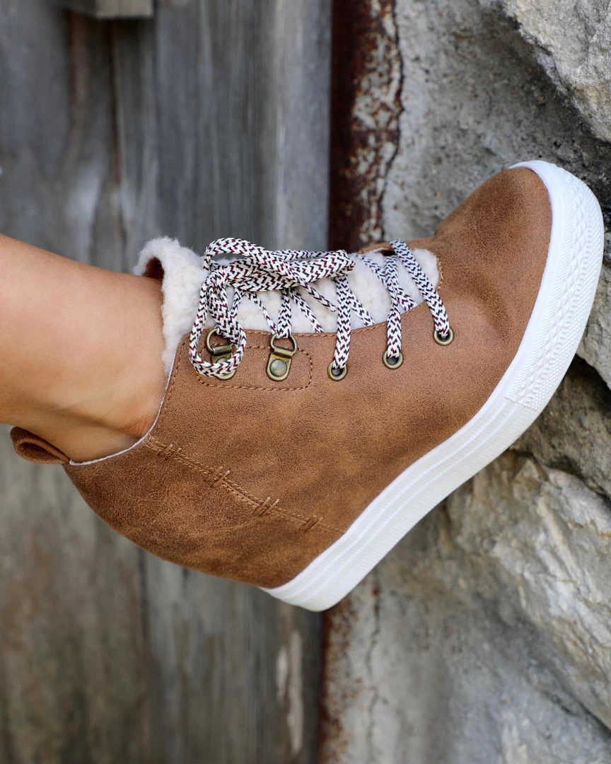 Be the first to review “Not Rated NR Dark Tan Stitched Wedge Sneaker” Cancel reply