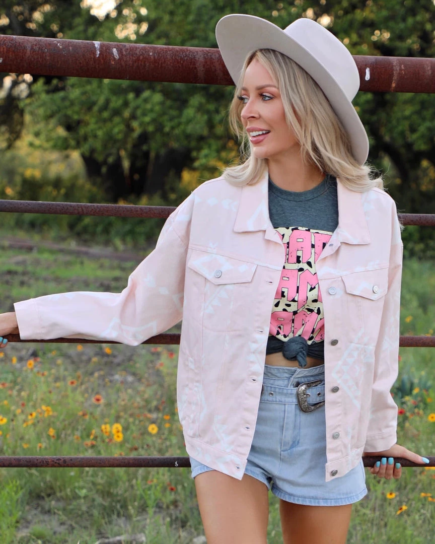 SKU: peach-love-6775613849777 Categories: Apparel, Outerwear, Rhinestone Cowgirl, TOPS, Tops, Trends Tags: 20983, Apparel, Denim, Jacket, June21, Long sleeve, Markdown, Salerack