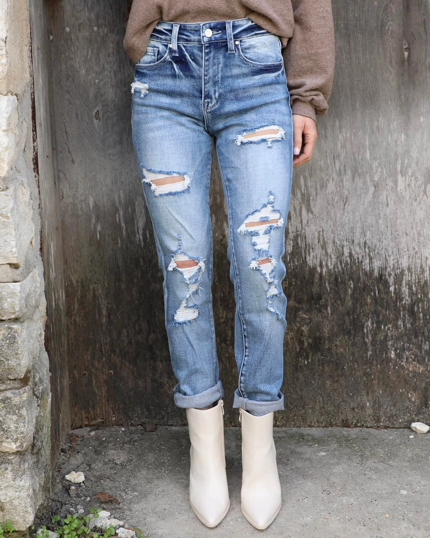 – 1.25″ Double cuffed hem with distressed