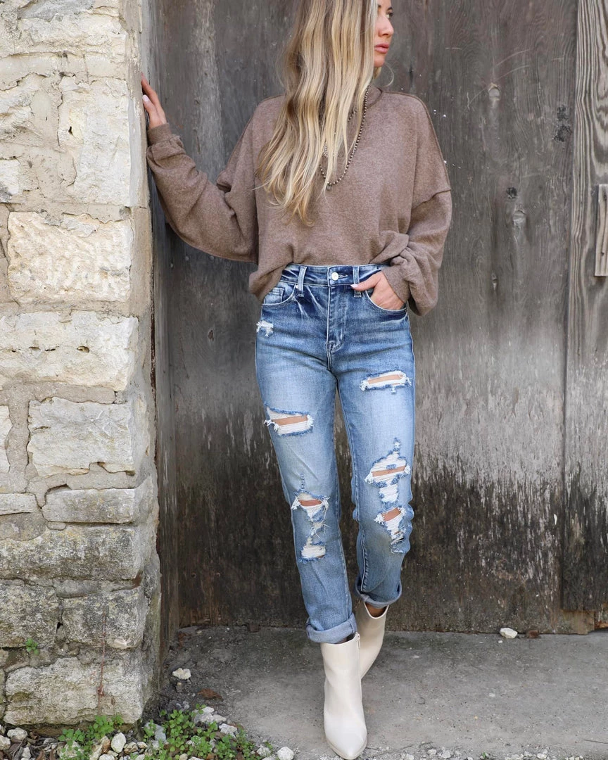 – Super high rise, Stretch Mom jeans