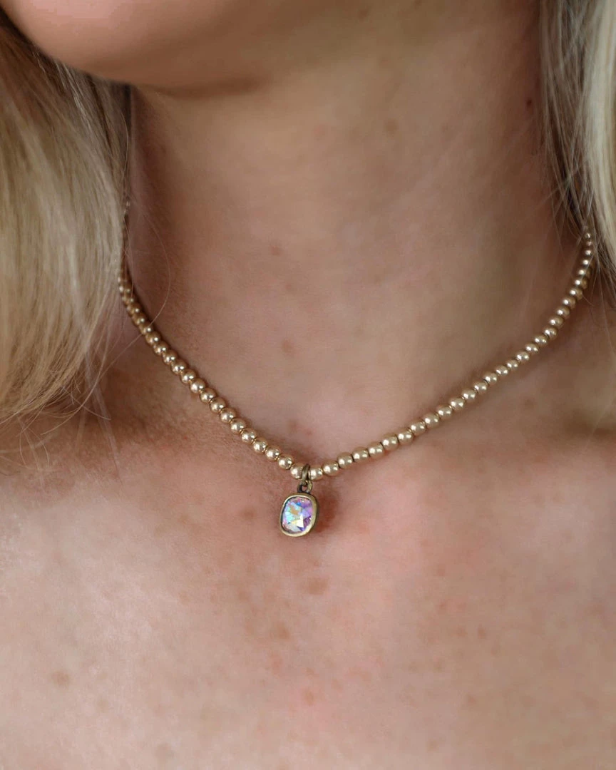 - PP Gold Beaded Choker with 4MM Cushion Cut Crystal