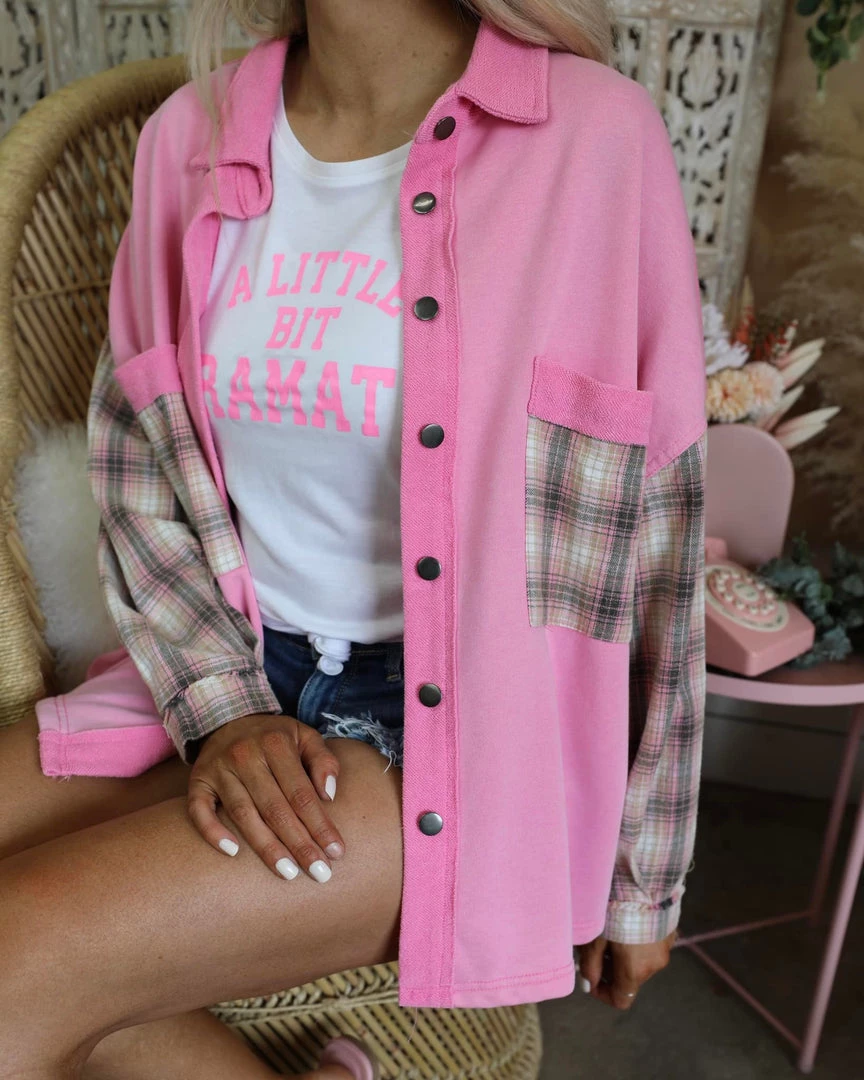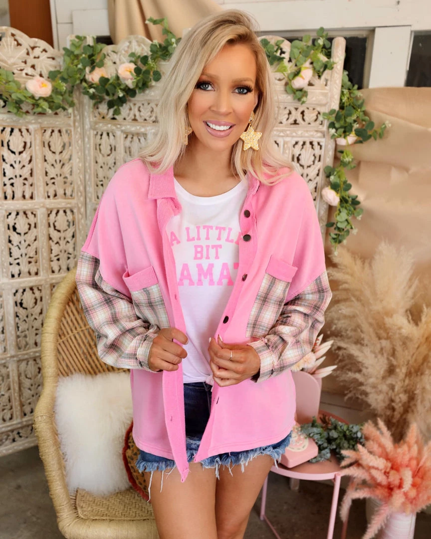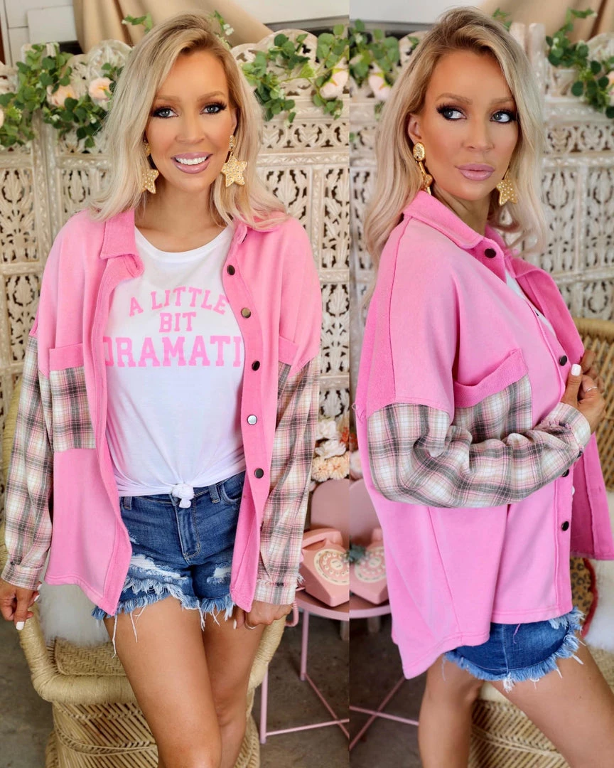 Bubblegum Pink with Brown/Tan Plaid Detail Shacket