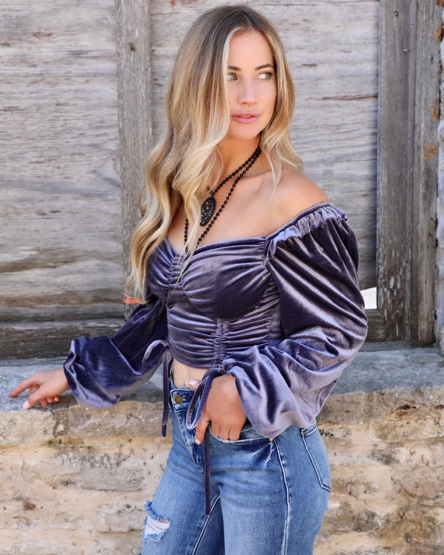 Lavender Velvet Off Shoulder Crop Top
