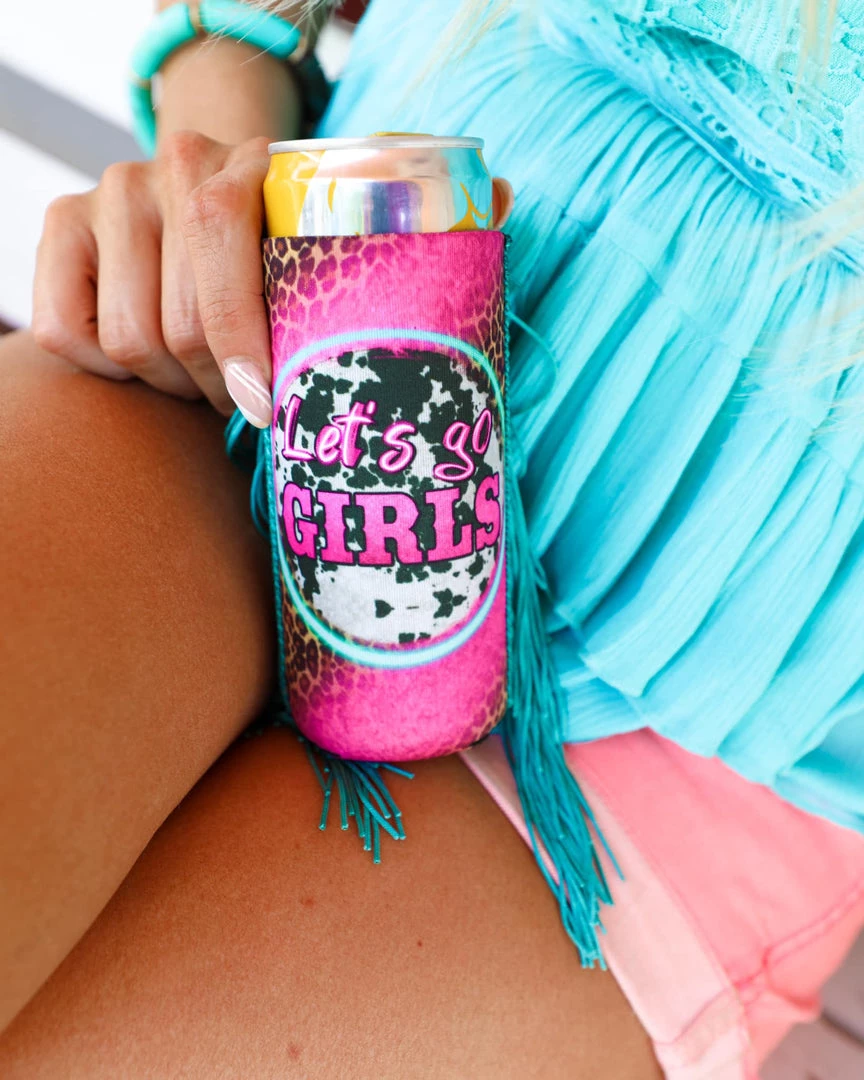 - Slim Turquoise Fringe “Let’s Go Girls” Koozie