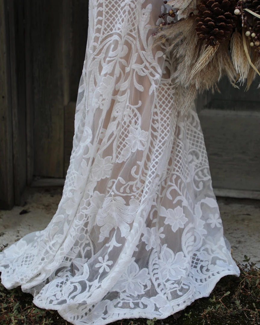 Back zipper with sheer lace detailed back