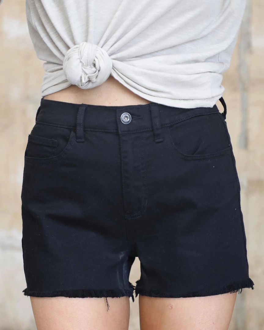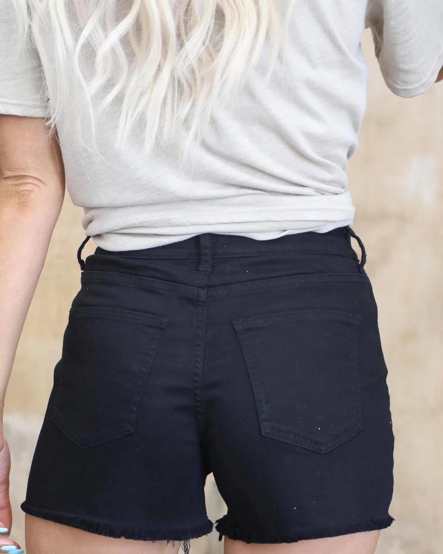 Black raw him high rise denim shorts with minimal stretch