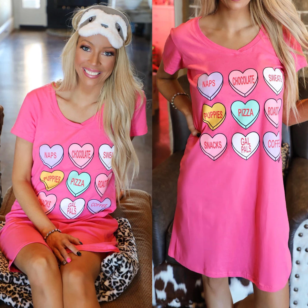 Be the first to review “The Lace Cactus Apparel Valentine Candy Sleepwear T-Shirt Dress” Cancel reply