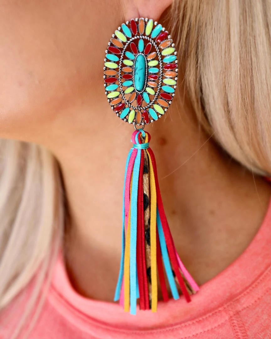 Be the first to review “The Lace Cactus Jewelry Multicolored Concho Stone Tassel Earrings” Cancel reply