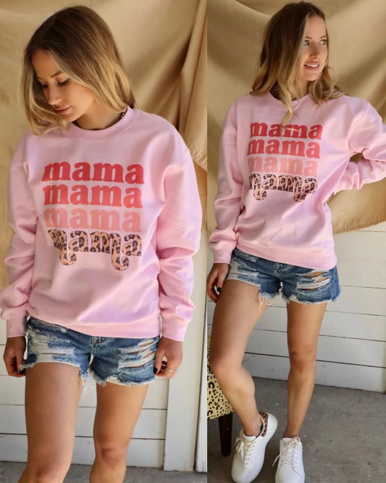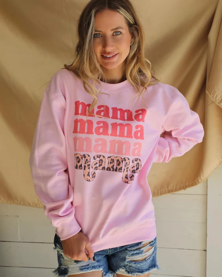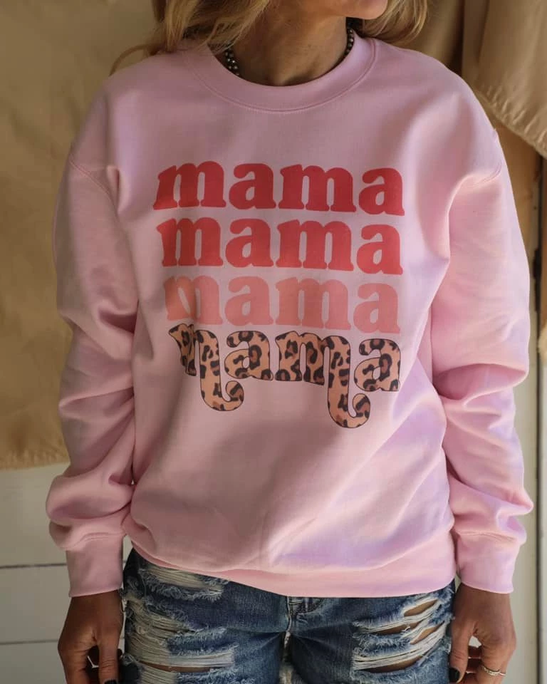 Pink Ombre-to-Leopard “Mama” Sweatshirt