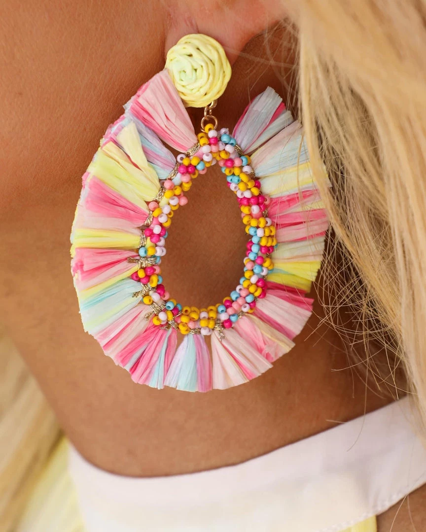 - Rainbow Straw Teardrop Earrings