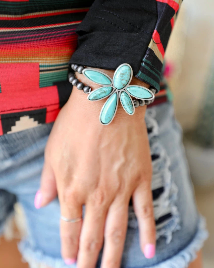 SKU: the-lace-cactus-7157330804913 Categories: Apparel, Bracelets, Floral, Jewelry, Trends, Western Vibes Tags: Bracelet, Faux navajo pearl, Flower turquoise cluster, Jewelry, Stone, Turquoise, Western