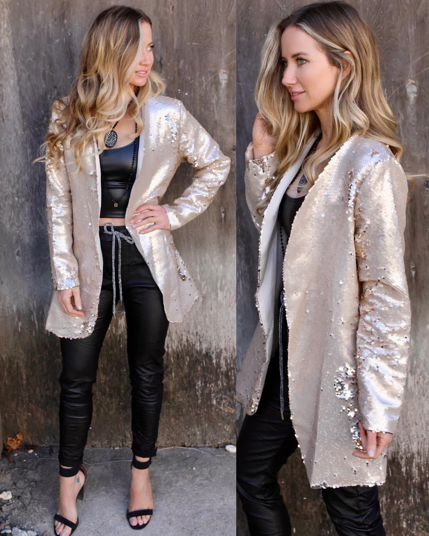 Champagne all-over sequin blazers