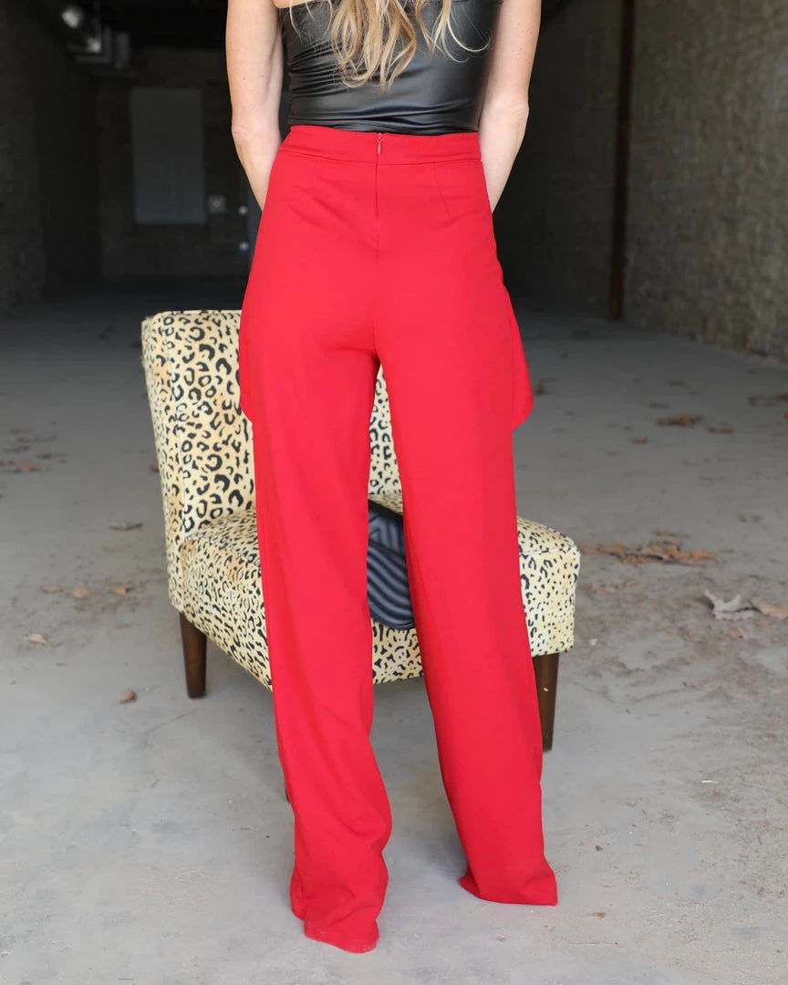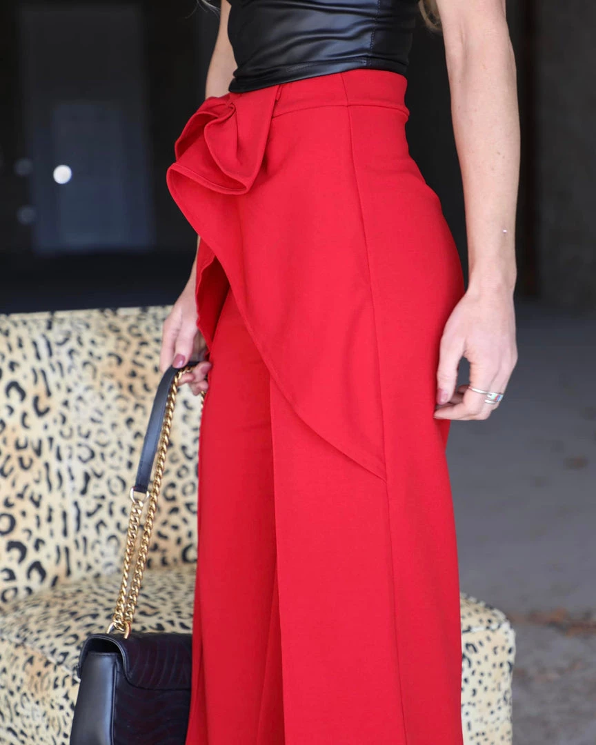 HIGH WAIST RIBBON RUFFLE DETAILED PANTS