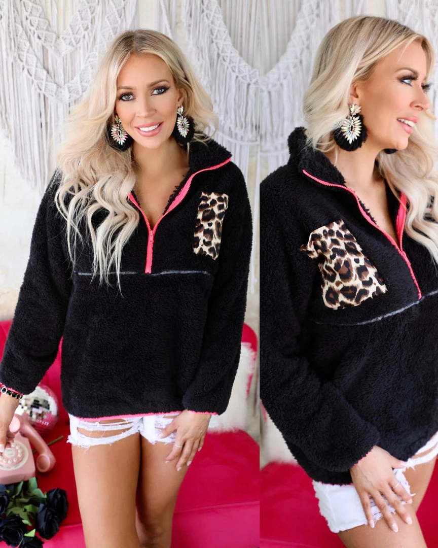 SKU: wannab-7166363730097 Categories: Apparel, Leopard Everything, TOPS, Tops, Trends Tags: Black leopard pullover, Leopard, Long sleeve, Mar22, Markdown, Outerwear, Pullover, Pullovers