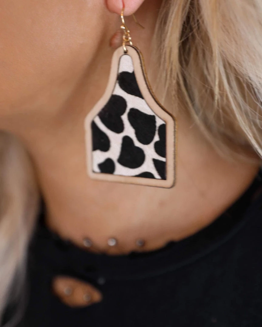 Be the first to review “WildFlower Black And White Cow Tag Earrings” Cancel reply