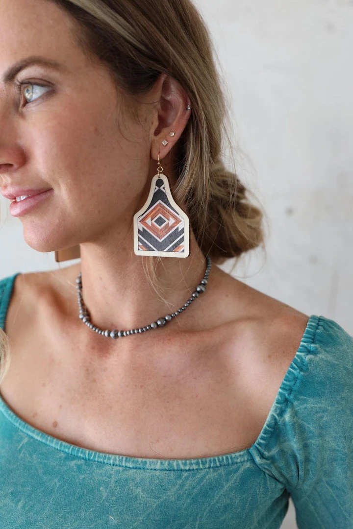 - Aztec Wooden Cattle Tag Earrings